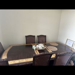 Classic Brown Dinning Table With Chairs And Plate Storage$300Dallas, TX