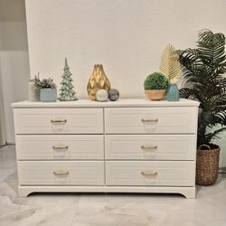 BEAUTIFUL WHITE DRESSER 6 DEEP ROLLING DRAWERS 58X17X32 LIKE NEW CONDITION GOLD KNOBS$230Hickory Creek, TX