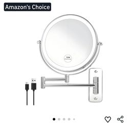 3431: New 8" Wall Mounted Lighted Makeup Mirror,Rechargeable Double Sided 1X/10X Magnifying Mirror with 3 Color Lights,Touch Dimmable Bathroom Vanity $20Lancaster, TX