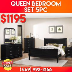 New In The Box 📦 Queen Black Bedroom Set 5pc ( Bed, Dresser, Mirror, Chest, Nightstand ) - Delivery And Financing Available $1,195Dallas, TX