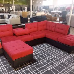 Nice Red And Black Cupholder Sectional With Free Storage Ottoman ( Ask For Jose)$899Dallas, TX