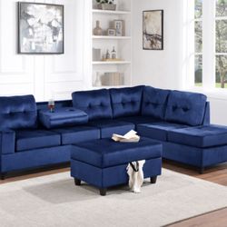 Blue Velvet Sectional And Ottoman $998Dallas, TX