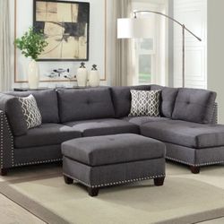 Sienna - Grey Linen Sectional + Ottoman Set FAST Delivery