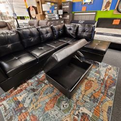 Black Leather Sectional With Ottoman Storage $1,199Dallas, TX