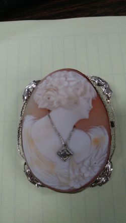 Italian carved Cameo with a Diamond 14K White Gold Vintage Pendant$595Lewisville, TX