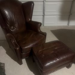 Beautiful Brown Leather Wing Back Chair With Foot Stool . So Comfortable $300Fairview, TX
