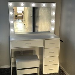 White Vanity with Lighted Mirror & Stool$150Plano, TX