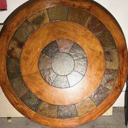 Round Wooden Coffee Table with Stone Inlay – Rustic Style & Set of 4 Solid Wood Dining Chairs – Padded Seats $500Dallas, TX