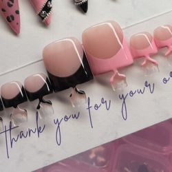 Press on toe nails French tips black pink handmade custom gel cute$20Beaumont, TX
