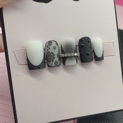 Short square Press on nails black milky white nude matte lace 3D gel French tips$40Beaumont, TX