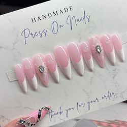 Extra long stiletto press on nails white French tips acrylic flowers hearts pink$40Beaumont, TX