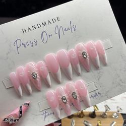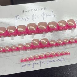 Toe press on nails pink French tip glitter nude custom handmade gel$60Beaumont, TX