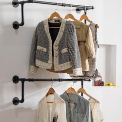 Clothes Rack, Industrial Wall Pipe Clothing Rack, Wall Mounted Heavy Duty, 2PCS, 35.43 length $25Garland, TX