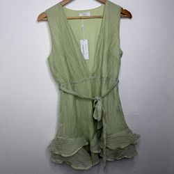 Sage V-Neck Ruffle Tie-Waist Romper in Light Green Sz:S$25Fort Worth, TX