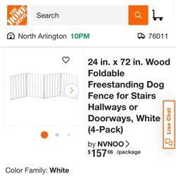 24 in. x 72 in. Wood Foldable Freestanding Dog Fence for Stairs Hallways or Doorways, White$60Grand Prairie, TX
