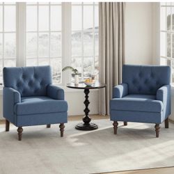 New Set Of 2 Accent Chair with Thick Cushion, High Back Reading Chair, Linen Blend Armchair with Solid Rubberwood Legs for Living Room, Bedroom, Re$325Mckinney, TX