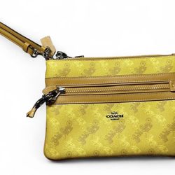 COACH Gallery Pouch In Horse and Carriage Print Yellow Multi like new$70Arlington, TX