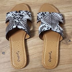 Black and White Snakeskin Printed Sandals, Women’s Size 6$8Terrell, TX