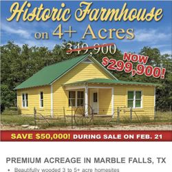 4 Acres 2/1 W/Private water well$299,900Marble Falls, TX