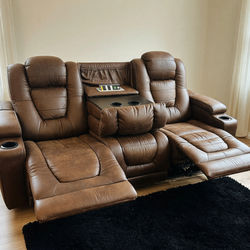 Like-New Brown Leather 3-Seater Recliner Sofa with 65-Inch TV Unit - Georgetown, TX$1,200Georgetown, TX