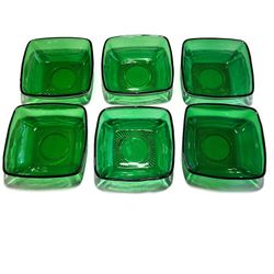 Set of 6 Anchor Hocking Glass Forest Green Charm Berry Bowls 4-3/4” Square $25Manor, TX