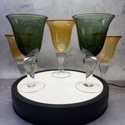 Set of (5) Gorgeous Tall Artland Iris Colored Bubble Blown Glass With Clear Stems. Two Sage, & Three Amber. Excellent condition.$79Austin, TX