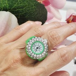 Green round shape girl's women's ladies unisex quartz diamond ring watch gift$18Austin, TX