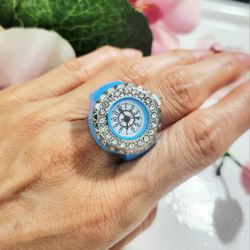 Blue round shape girl's women's ladies unisex quartz diamond ring watch gift$18Austin, TX