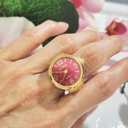 Red round shape girl's women's ladies unisex quartz diamond ring watch gift$18Austin, TX