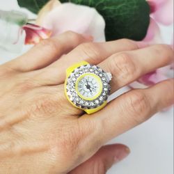 Yellow round shape girl's women's ladies unisex quartz diamond ring watch gift$18Austin, TX