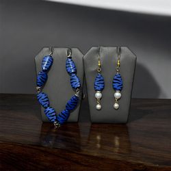 Blue Zebra Stripe Handcrafted Earrings And Necklace Set.$20Manor, TX