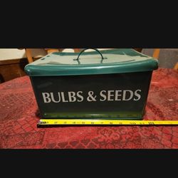Bulbs and Seeds Handled Tin Box, a Pair of Small Gardening Gloves, a Pail, a Small Shovel, a Small Rake, a Pkg of Wildflower Seeds and a Watering$20Sunset Valley, TX