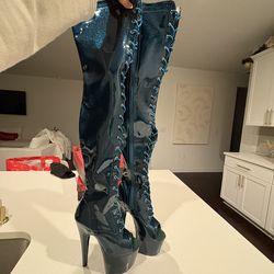 Pleasers Long Over The Knee Teal / Blue Sparkle Boot$70Mustang Ridge, TX