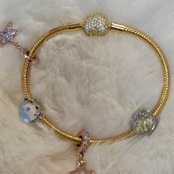 Pandora Moments Pavé Heart Clasp Snake Chain Bracelet in Pandora gold plated 7.1 in 18cm$95Austin, TX
