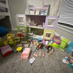 Wooden Dollhouse + Furniture + Dolls + Accessories Bundle$50Austin, TX