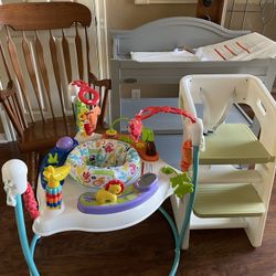 Solid oak rocking chair, Graco Changing Table , Fisher Price Jumper, High chair with seat belt, Boppy Nursing pillow, portable bed$225Georgetown, TX