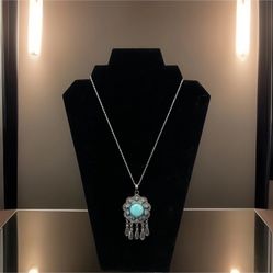 Silver Toned Boho Western Style Necklace With Large Round Faux Turquoise Pendant$15Manor, TX