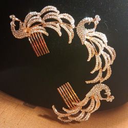 Peacocks Hairpiece Accessorie On Rose Gold Tone, Rhinestone Embellishment$15San Antonio, TX