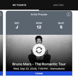 Bruno mars Tickets$1,625San Antonio, TX
