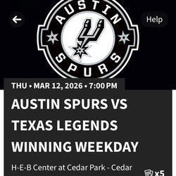 Austin Spurs vs Texas Legends Winning March 12 Game$280San Antonio, TX