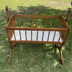 Vintage Jenny Lind Spindle Style Wooden Brass Baby Cradle/Bassinet 👉🏼missing lock pin & mattress $200San Antonio, TX