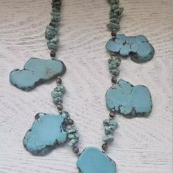 Genuine Turquoise Slab & Nugget Necklace Chunky Large Silver Vintage$95San Antonio, TX