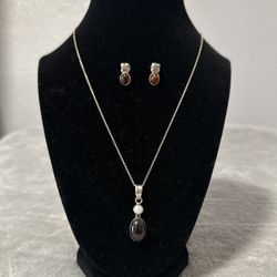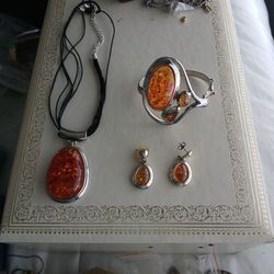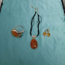 Silver Set Amber Stones Necklace Bracelet And Pierced Drop Earrings $80San Antonio, TX