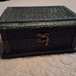 Vintaged Black Wooden Faux Crocodile Jewelry box with brass lock $15Boerne, TX