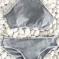 Cross Bikini Grey/White high-neck top size small women’s$15Helotes, TX