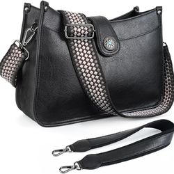 Trendy, Leather Hobo Handbag Crossbody Purses Shoulder Bucket Bag with 2 Adjustable Strap