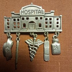 Vtg Pewter Hospital Brooch W 5 Dangling Charms By JJ$18San Antonio, TX