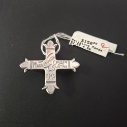 Gothic Silver Cross With Dangling Dark Grey Pearl Brooch Pin$35San Antonio, TX