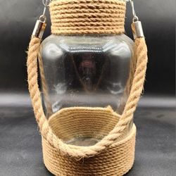 Large glass hanging jar / candle or plant holder with Jute rope 10.5 long and 3.5 inches opening $32San Antonio, TX