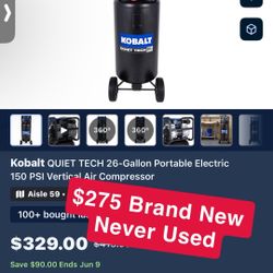 Kobalt 26 Gallon Portable Air Compressor $225San Antonio, TX